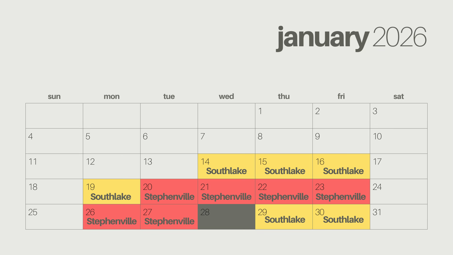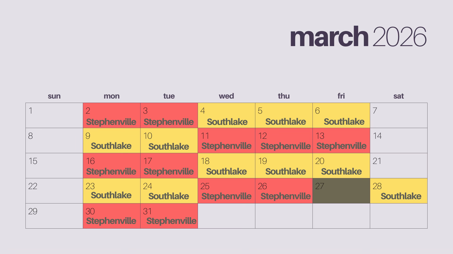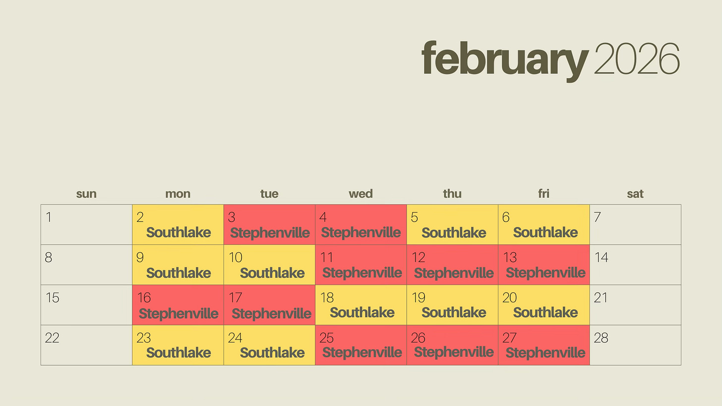 I will be splitting my time between both the Stephenville and Southlake offices, and each week I will be in both locations.